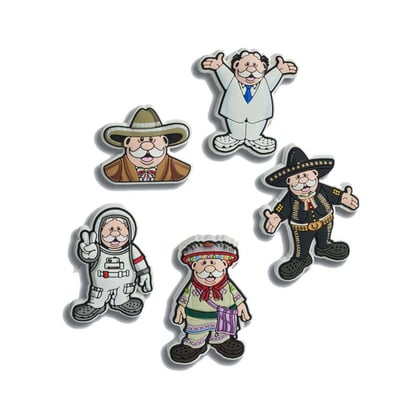 Además, se ofrece un paquete adicional de cinco accesorios intercambiables que permiten personalizar aún más el calzado. Estas piezas presentan distintas versiones del Dr. Simi, inspiradas en figuras tradicionales y elementos de la cultura mexicana, lo que amplía su atractivo.