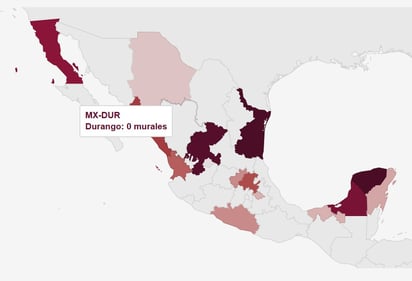 Al consultar en la página mundialsocialmx.segob.gob.mx el porcentaje de avance en la recuperación de espacios públicos de Canchas y Murales, Durango no registra porcentaje de cumplimiento en murales y canchas.