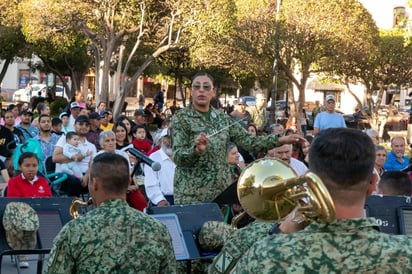Bajo la batuta de la Subteniente Músico Rosa María Hernández Gómez, la agrupación perteneciente a la III Región Militar ofreció un repertorio que recorrió la columna vertebral de la identidad mexicana.