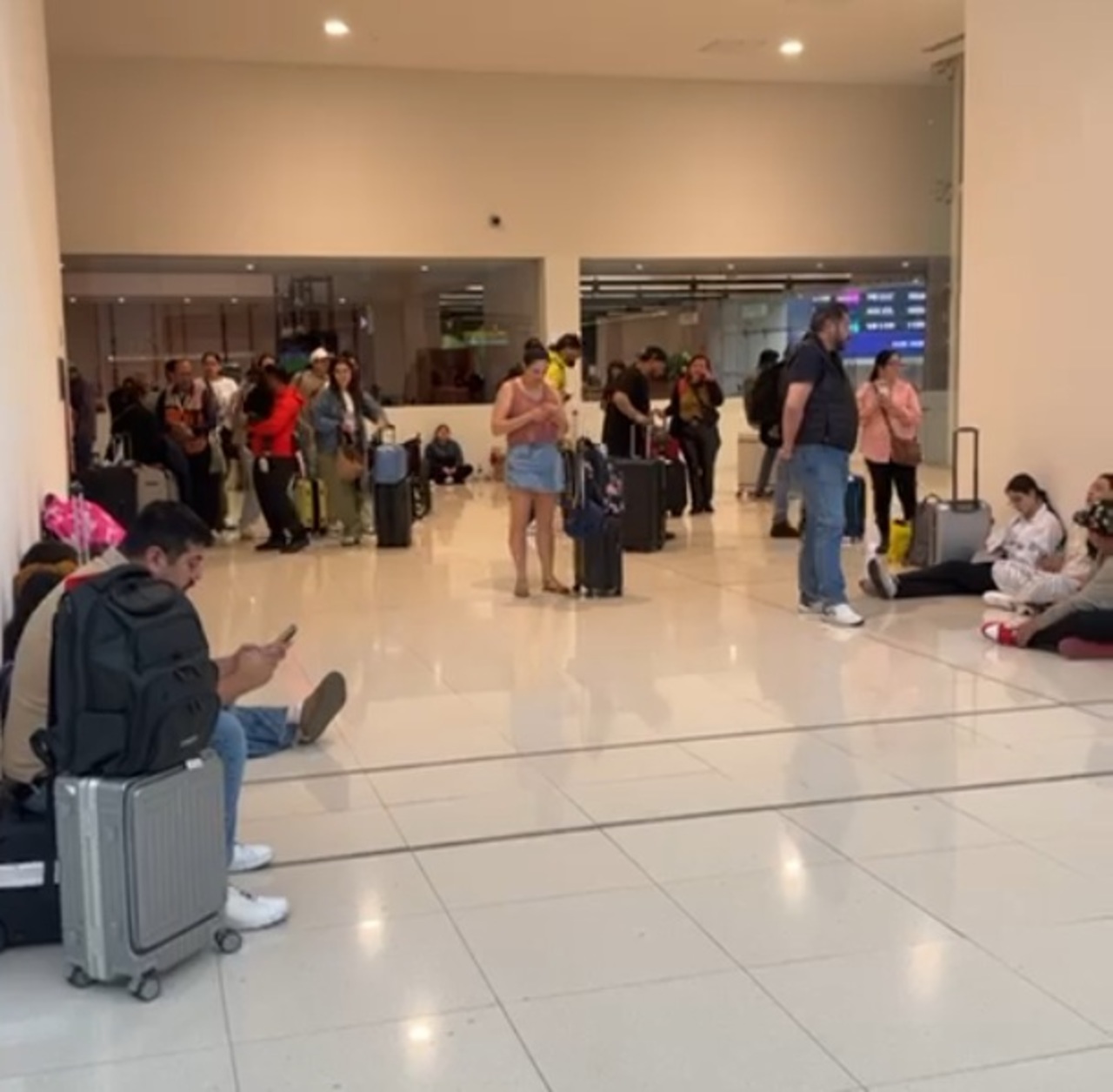 "Todos estamos en la sala arriba, esperando hotel porque no quieren reservarnos, esto está muy feo, se supone que hay toque de queda ahorita en la tarde, los vuelos están cancelados y no nos dejan entrar ni salir", afirmó.