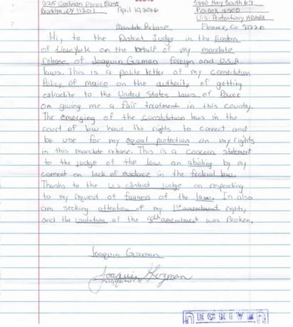 'El Chapo' envía nueva carta, ahora en inglés, al juez Brian Cogan; ¿qué fue lo que le dijo?