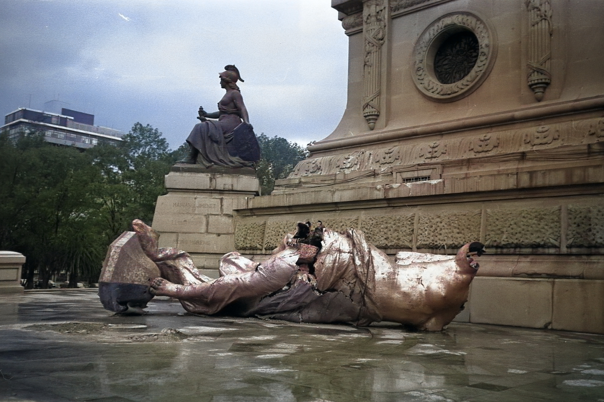 Las fotografías de la época, hoy consideradas auténticas joyas históricas, muestran el cuerpo del Ángel partido y tendido a los pies de la columna, una imagen que marcó a toda una generación.