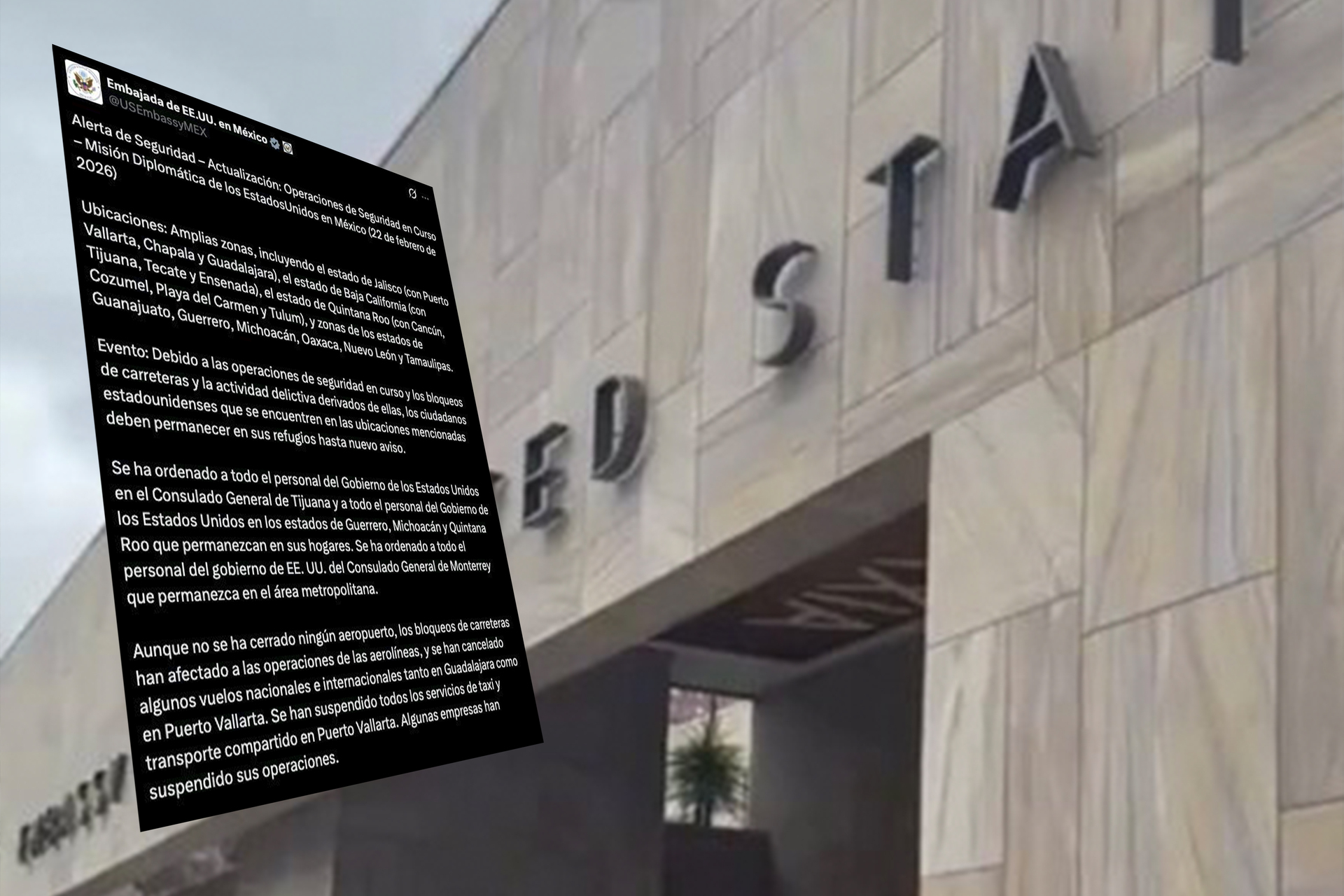 La Embajada de Estados Unidos en México publicó este domingo 22 de febrero de 2026 una Alerta de Seguridad (actualización) por operaciones de seguridad en curso que, de acuerdo con el aviso, han derivado en bloqueos de carreteras y actividad delictiva en distintas regiones del país.
