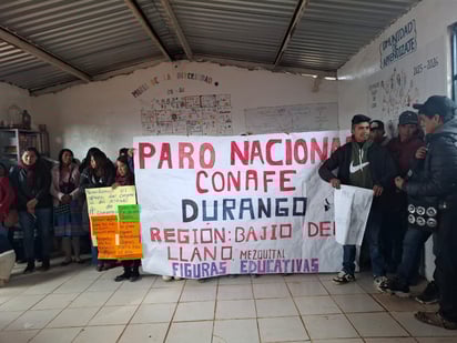 Figuras educativas del Consejo Nacional de Fomento Educativo (Conafe) de la zona indígena de Mezquital, Durango, se unieron al paro nacional para exigir apoyos económicos justos, un bono de fin de año proporcional a su servicio, así como el equipamiento necesario para su desempeño.