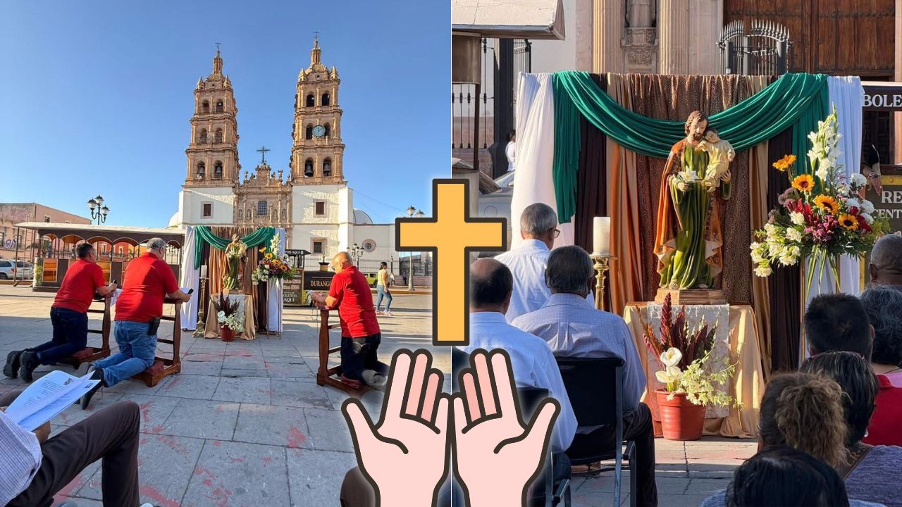 En la Plaza de Armas de la Ciudad de Durango, frente a la Catedral Basílica Menor, se llevó a cabo un rosario encabezado por varones, en honor a San José, donde también pudieron consagrarse al patriarca de la Iglesia Católica.