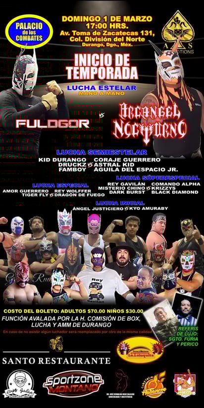 La justicia en el encordado estará a cargo de Sgto. Furia y Perico, bajo el aval de la H. Comisión local de Box, Lucha y AMM. En este marco, la función se perfila como el punto de partida para medir el pulso real de la temporada y el lugar que AS Promotions buscará ocupar en el panorama luchístico de la Durango para este 2026.