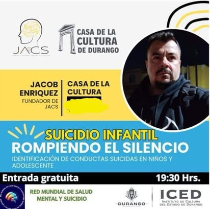 El ponente será Jacob Enríquez, fundador de JACS, quien abordará herramientas para detectar señales de alerta y promover la atención oportuna en menores.