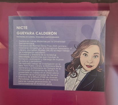 Guevara Calderón, fundadora y directora de la revista “La Desvelada”, ha consolidado en los últimos cinco años una plataforma referente para el periodismo narrativo latinoamericano. Su distinción otorgada por el Tec de Monterrey coincide con un hito histórico para la duranguense, recibir el prestigioso Norman Sims Prize (2025), otorgado por la International Association for Literary Journalism Studies (IALJS) en Nueva York.