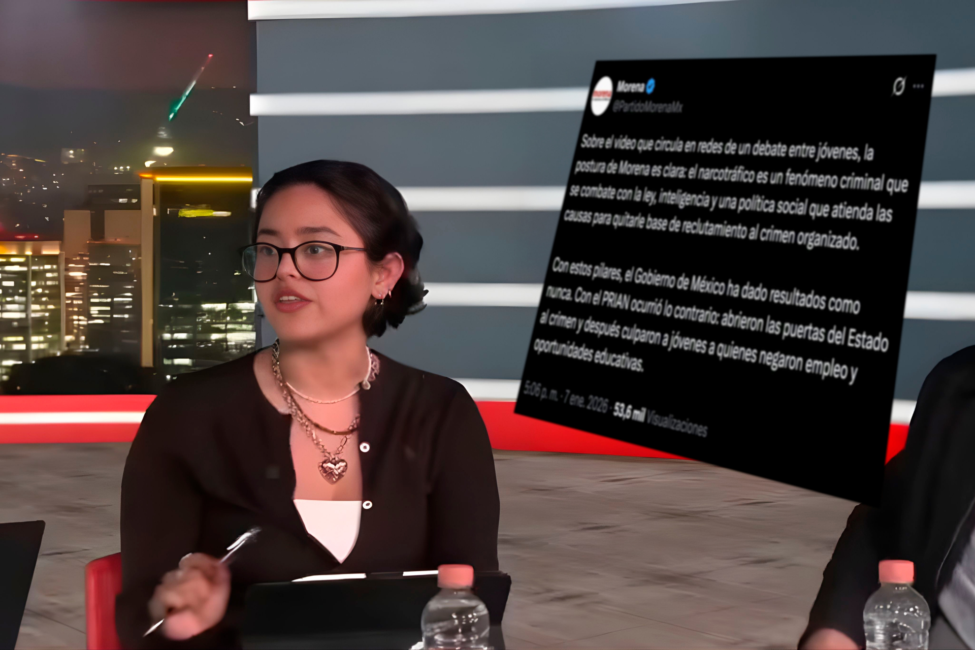 La postura de la joven fue emitida en una transmisión de “Razonados” el pasado 19 noviembre del 2025, donde dijo que "el narcotráfico es uno de los mayores, de los principales empleadores a nivel nacional y que recluta a cerca de 160 mil a 186 mil personas y en realidad se necesitan 350 más a la semana para, justamente, cubrir a las personas que son detenidas o asesinadas".