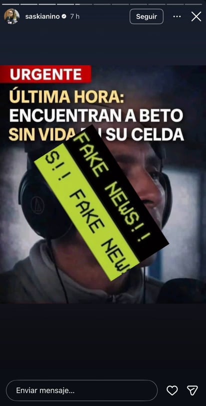 Primero compartió una fotografía donde se daba la noticia y agregó un "fake news", y después hizo un video en donde afirmó que Beto se encontraba bien, que había ido a visitarlo.
