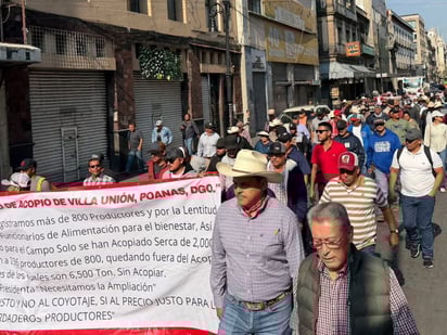 Productores de frijol y maíz del municipio de Poanas, Durango, quienes han señalado diversas inconformidades en el proceso de acopio de frijol y poca transparencia del personal de Alimentación para el Bienestar, se manifestaron en el Zócalo de la Ciudad de México y en la Cámara de Diputados.