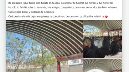 "No solo tu familia sufre tu ausencia, tus amigos, compañeros, alumnos, conocidos también lo hacen. Naciste para brillar y brillando te despides. ¡Qué preciosa huella dejas en quienes te conocimos, descansa en paz Rosalba Julieta!", finaliza el post.