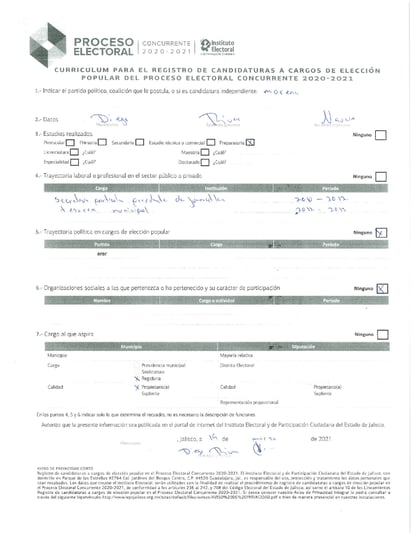 De acuerdo a un currículum para el registro de candidaturas de 2020-2021 compartido por el Instituto Electoral y de Participación Ciudadana (IEPC) de Jalisco, Diego solo tiene como estudios la preparatoria.