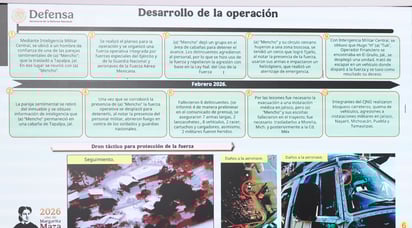 De acuerdo con información oficial que fue dada a conocer por el secretario de la Defensa, el general Ricardo Trevilla Trejo, durante la Mañanera del Pueblo de este lunes 23 de febrero, el seguimiento se concentró en los vínculos personales de “El Mencho” hasta que se generaron las condiciones para planear su captura. El resultado fue un despliegue coordinado que incluyó fuerzas terrestres, una unidad aeromóvil y apoyo aéreo.