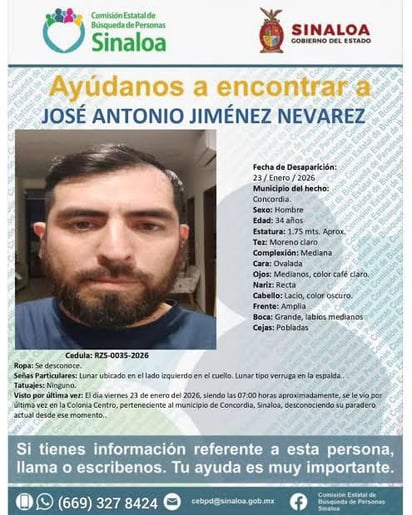 Se trata de José Antonio Jiménez Nevárez, su cuerpo fue localizado en avanzado estado de descomposición en la fosa de la localidad de El Verde, Concordia.
