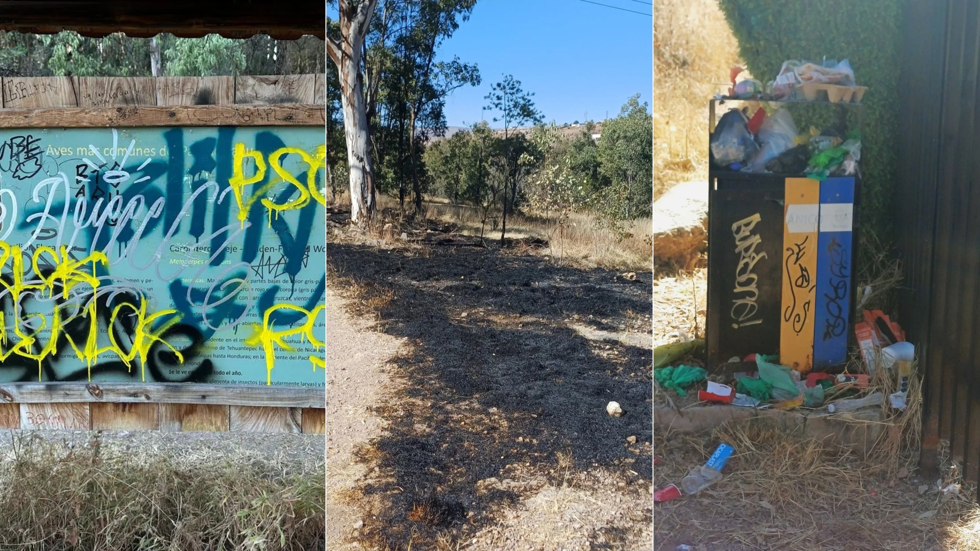 Asimismo, en algunas imágenes se observan aparentes nuevos actos de vandalismo y grafitis, los cuales según usuarios que acuden con frecuencia, no estaban presentes hasta hace un par de semanas, principalmente en los letreros informativos del área de avistamiento de aves.