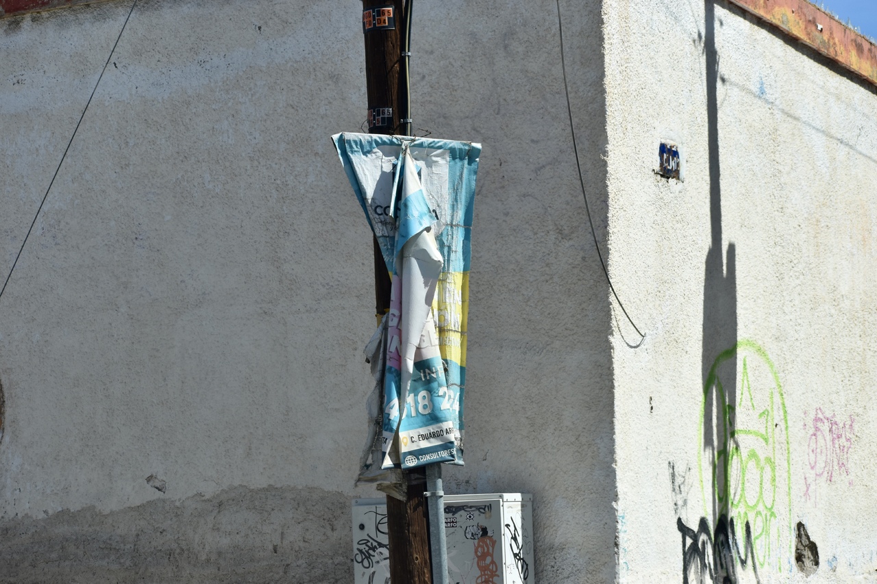 Parte de la publicidad que llevaba años fue retirada incluso por el viento, dejando los restos en los postes.
