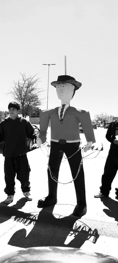 En esta ocasión, se elaboraron dos figuras: una con la imagen de Claudia Sheinbaum y otra con la de Vicente Fox. "Es la imagen de Claudia por la corrupción que existe, que no nos digan que no es cierto", expresó una de las mujeres que participan en la recolección de recursos para la realización del evento, quienes suelen instalarse a la orilla de la carretera Durango-México.