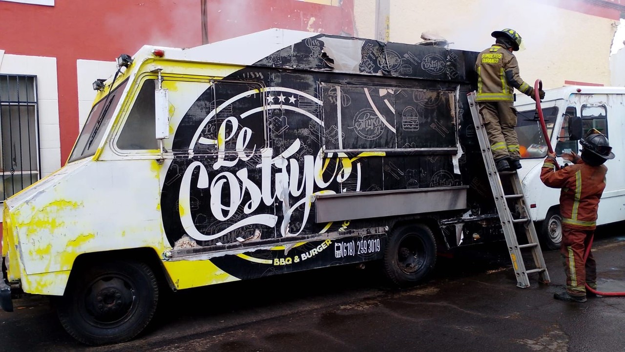 La tarde de este domingo 5 de abril se registró un incendio en un camión de comida ubicado en la Zona Centro de la ciudad de Durango, lo que movilizó a cuerpos de emergencia. El reporte fue atendido por elementos del Cuerpo de Bomberos, luego de una llamada al sistema 911 que alertó sobre un siniestro en un comercio localizado en el cruce de calle Guadalupe y calle Hernández.