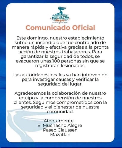 Personas que aún comían y bebeían se alarmaron y salieron corriendo del lugar, mientras que personal del lugar sofocaban las llamas y después se unió el cuerpo de Bomberos de Mazatlán.