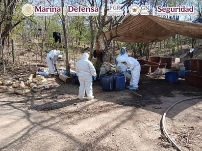 La Secretaría de Marina (SEMAR) informó que como parte de un operativo federal fueron desmantelados y destruidos laboratorios clandestinos dedicados a la elaboración de drogas sintéticas, uno de ellos ubicado en la sierra del estado de Durango.
