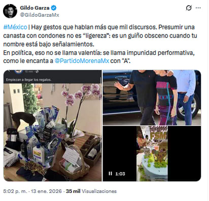 "¡Se ve que conocen al hoy senador acusado por violación, porque, entre los obsequios, hay una canasta con cremas y condones!", se lee entre algunos de los comentarios".