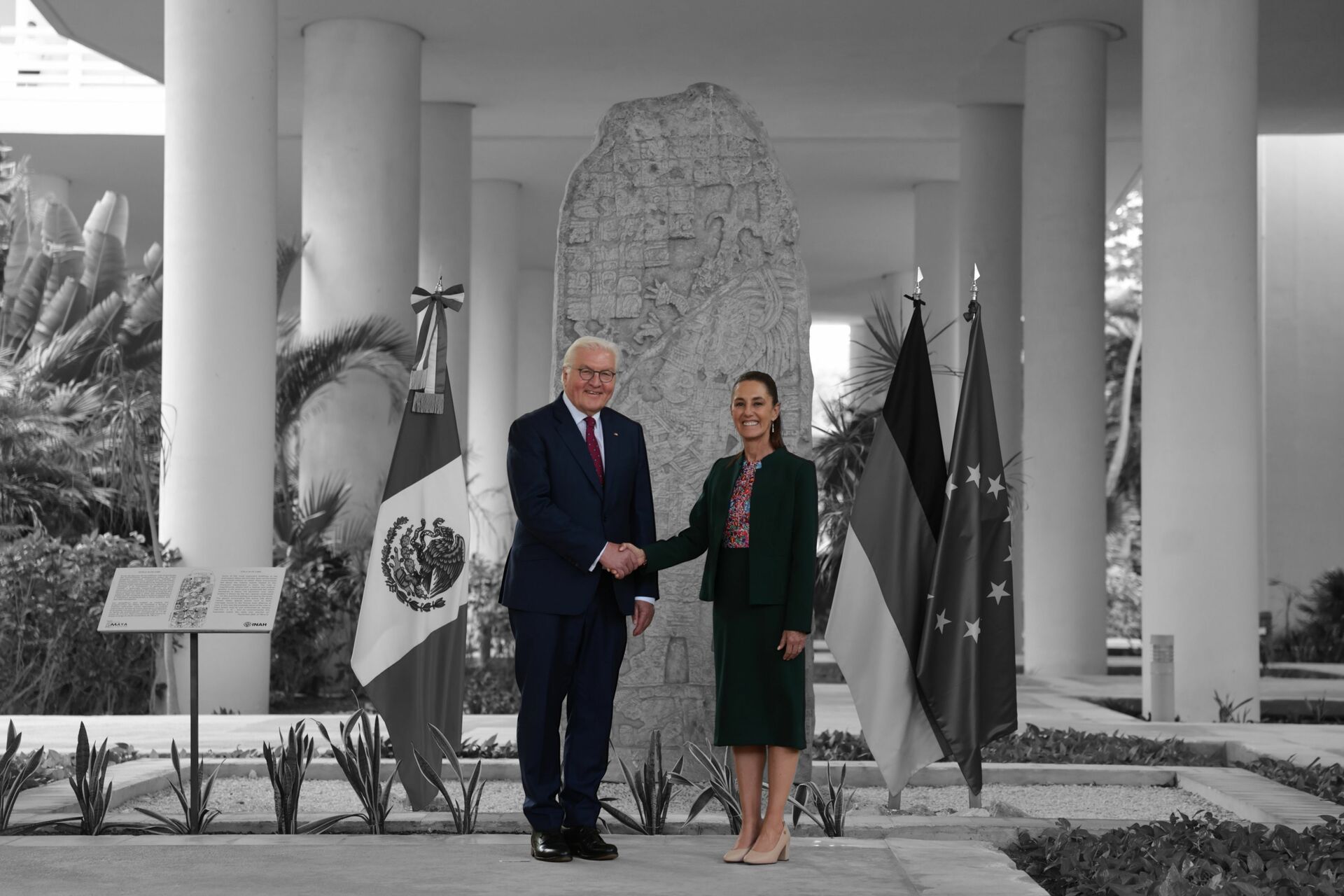 En el Museo Maya de Cancún se realizó la recepción oficial para Frank-Walter Steinmeier, donde acudieron funcionarios de ambos países, además que se entonaron los himnos de ambas naciones.