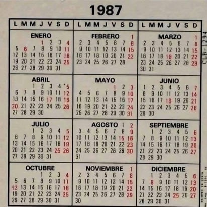 Uno de los ejemplos más recordados es 1987, un año que comparte calendario idéntico con 2026. Es decir, cualquier fecha que fue lunes, martes o viernes en 1987, volverá a caer en el mismo día de la semana este año.