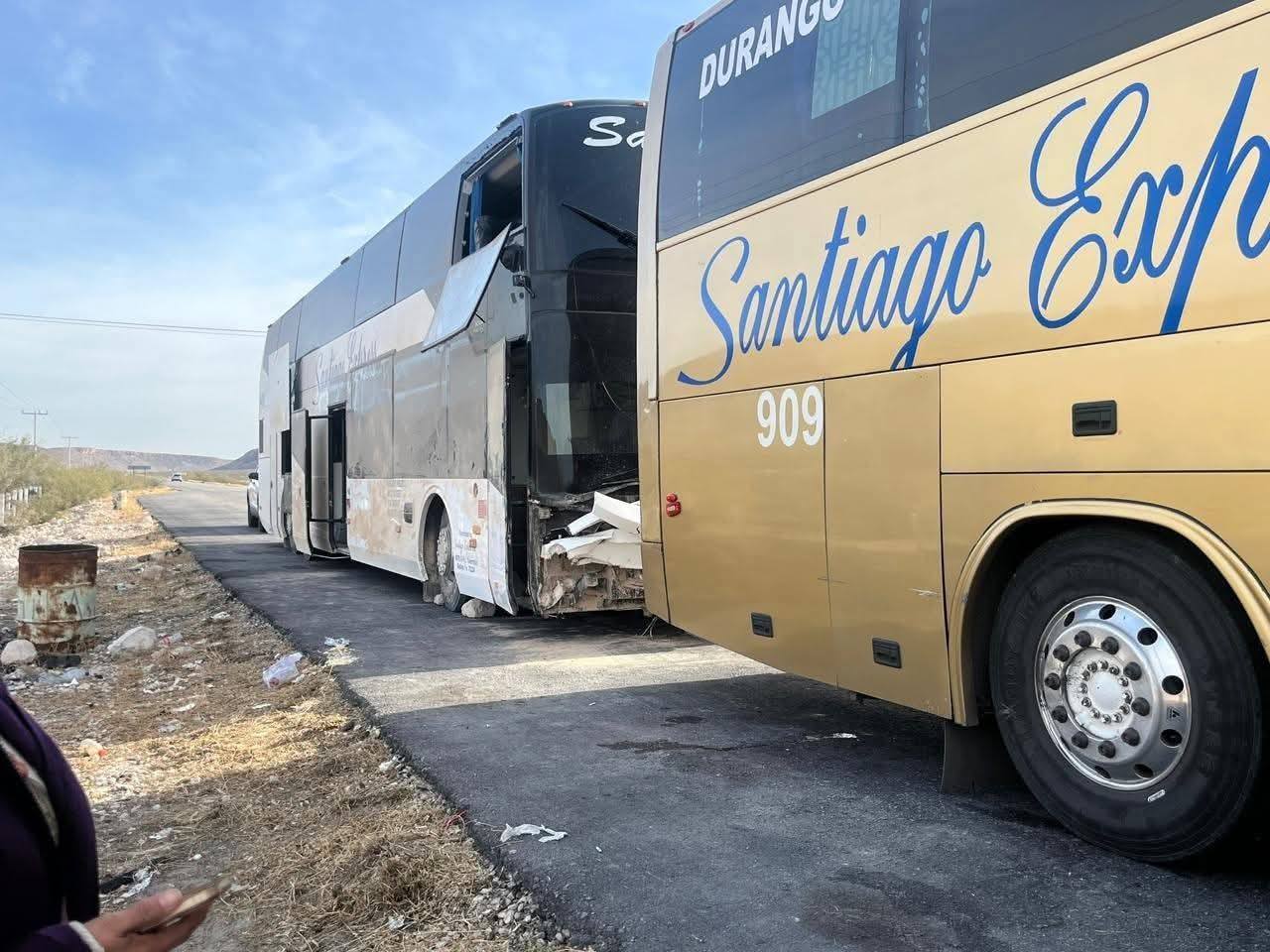 De los 39 pasajeros que viajaban en un autobús de la empresa Santiago Express con destino a Durango y que se accidentó en el municipio de Cuatro Ciénegas, Coahuila, dos permanecieron en la ciudad de Monclova como lesionados. Los otros 37 continuaron su trayecto y arribaron a la ciudad de Durango, de los cuales cinco manifestaron posteriormente presentar molestias físicas, se les otorgó el pases para revisión médica.