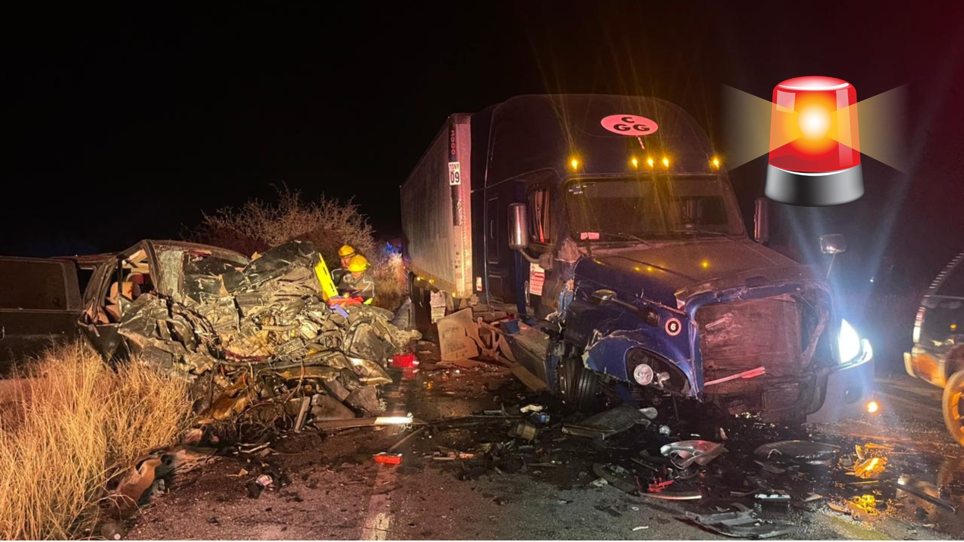 De acuerdo con los primeros datos recabados, el tractocamión circulaba de sur a norte procedente de Culiacán con destino a Parral, cuando al salir de una curva se habría encontrado con la camioneta que presuntamente invadió su carril, provocándose el impacto.