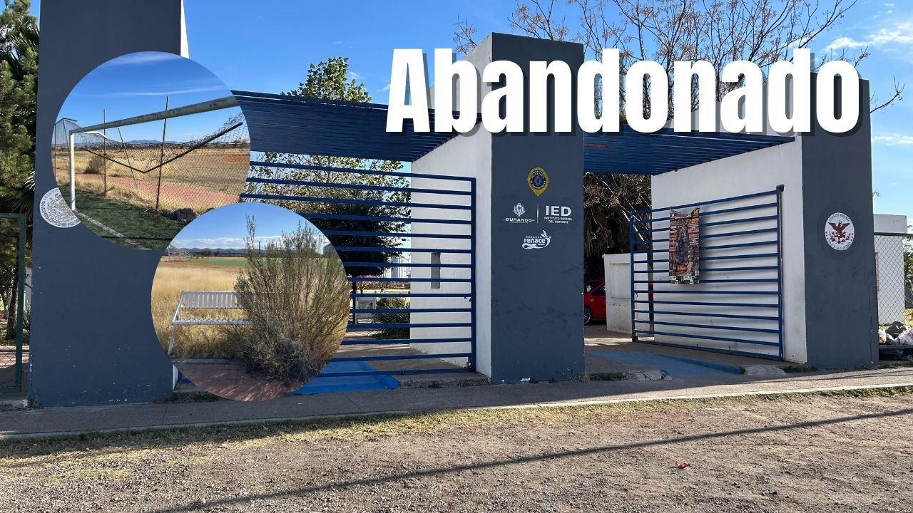 En las fotografías de El Siglo de Durango se puede observar: maleza que ha crecido a tal nivel que inhabilita algunas bancas, bardas perimetrales derribadas, ganado invadiendo los campos, etc.