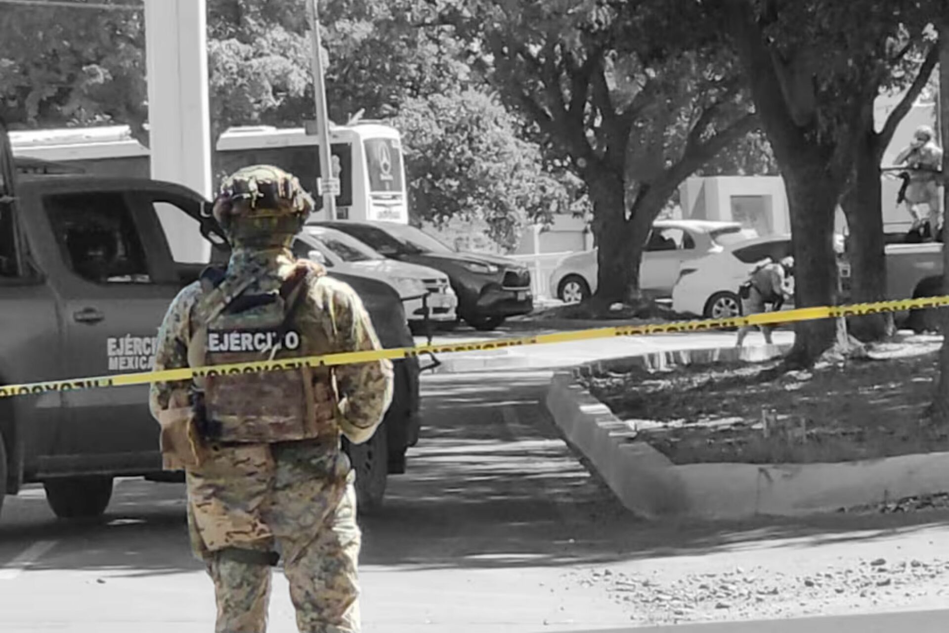 Los elementos del ejército fueron los primeros en llegar al cruce de la avenida Eldorado y el Boulevard de los Álamos, donde se ubica un expendio de gasolina enfrente. Sin embargo, no lograron detener a los responsables del ataque al negocio de una de las firmas de diseño de gorras más conocidas de la ciudad.