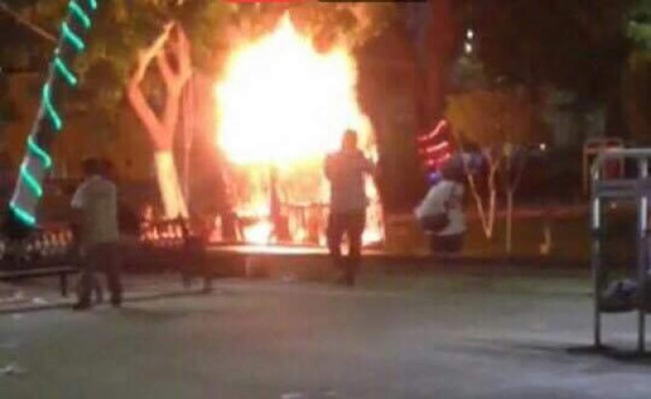 Como parte de los disturbios, sujetos desconocidos incendiaron el árbol de Navidad y los adornos del “Nacimiento” que estaban instalados en la plaza principal de Umán, todo esto por enojo en contra de las alzas a los combustibles.